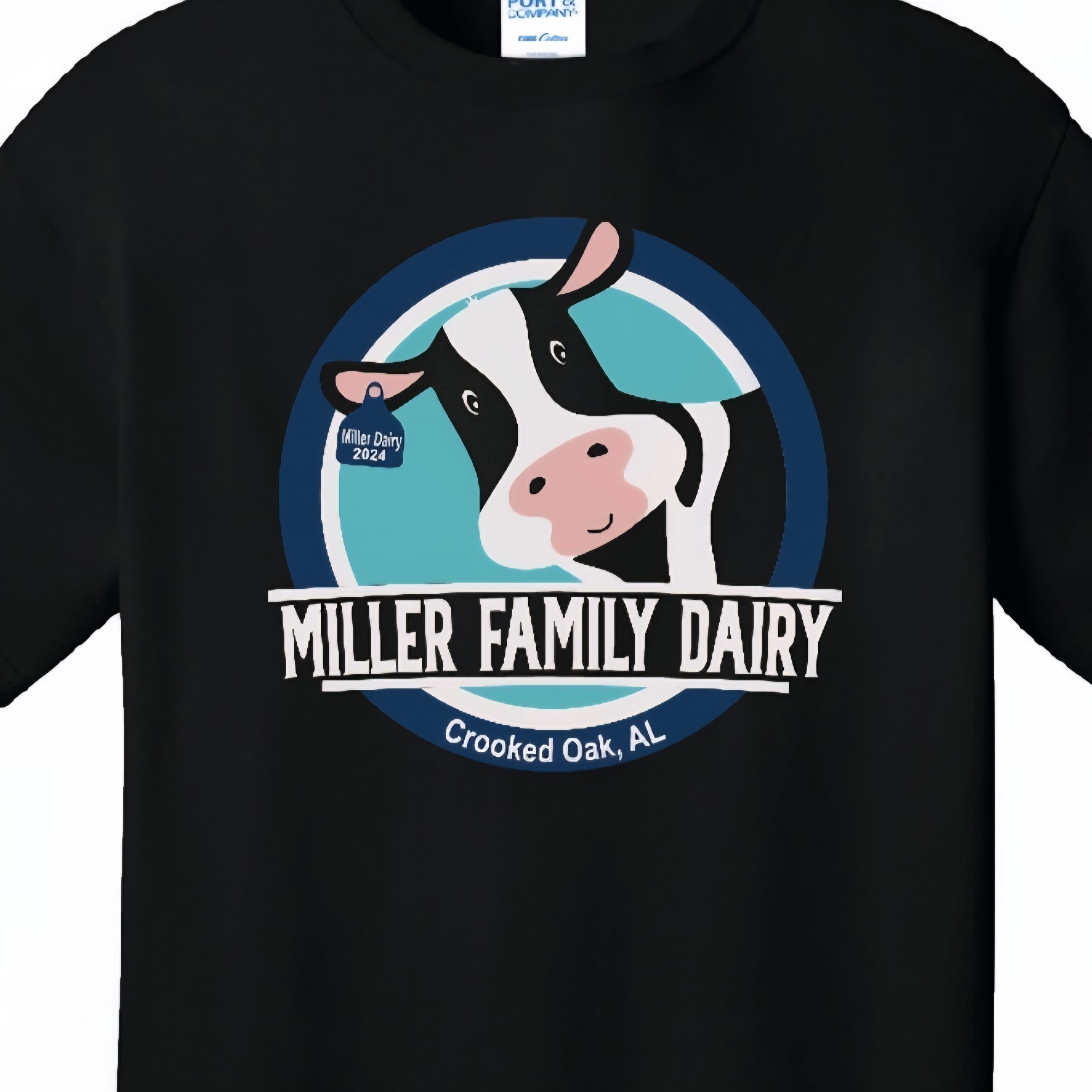 Tri blend, soft style screen printed Miller Family Dairy logo on front